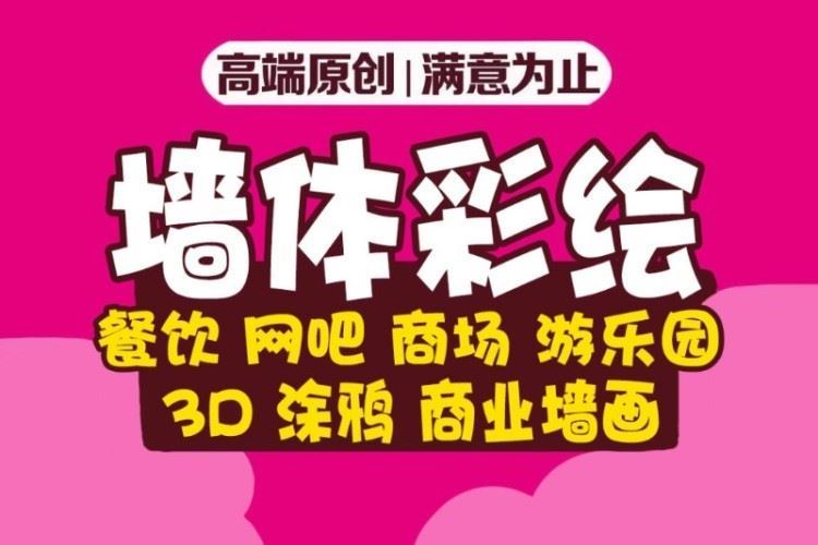 1.承接室内外大小型墙体绘画工程 2.根据墙体大小,艺术类型给予报价 3.预付订金施工,施工结束补齐全款,不额外收取任何费用。 4.主要服务内容:文化墙-商场-游乐园-幼儿园-网吧-涂鸦-电视背景墙、